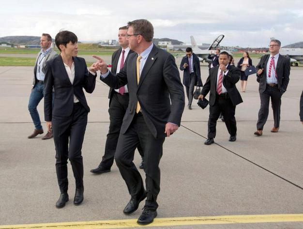 Ο Αμερικανός υπουργός Άμυνας, Ash Carter, και η Νορβηγίδα υπουργός Άμυνας, Ine Marie Eriksen Soreide, στη Μπόντο της Νορβηγίας, τον Σεπτέμβριο του 2016. NTB SCANPIX / JAN-MORTEN BJORNBAKK / VIA REUTERS