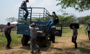 FacebookTwitterPinterest Migrants are taken up the San Pedro river between Guatemala and Mexico and transport by cattle trucks to a near by village in Tabasco, Mexico. Photograph: Encarni Pindado for the Guardian