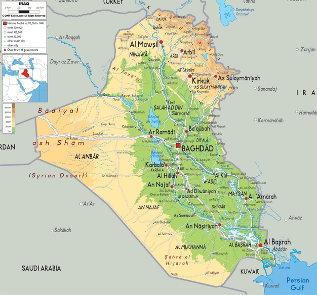 Ο χάρτης του Ιράκ. Πηγή: http://www.ezilon.com/maps/asia/iraq-physical-maps.html