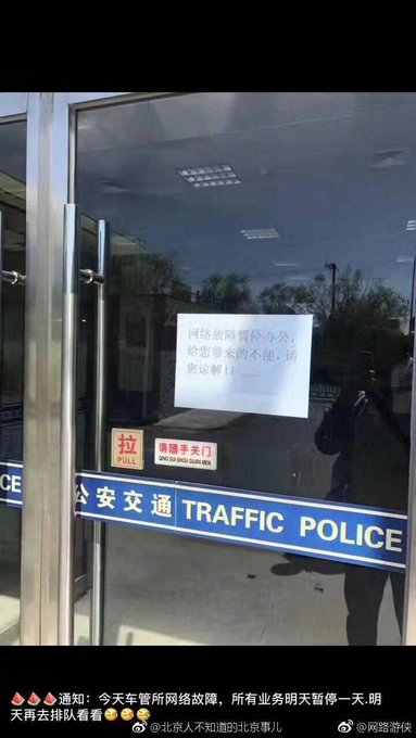 Various Chinese traffic police, immigration authorities and Public Security Bureaus were forced to suspend normal work: