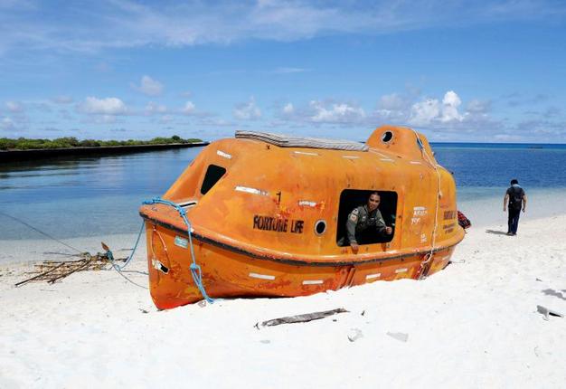 Ένας στρατιώτης κοιτάζει έξω από μια σωστική λέμβο σε παραλία στο κατεχόμενο από τις Φιλιππίνες νησί Thitu, τον Απρίλιο του 2017. ERIK DE CASTRO / REUTERS