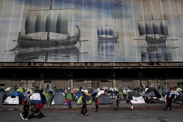 Πρόσφυγες και μετανάστες σε αυτοσχέδια κατασκήνωση στον Πειραιά, τον Απρίλιο του 2016. ALKIS KONSTANTINIDIS / REUTERS
