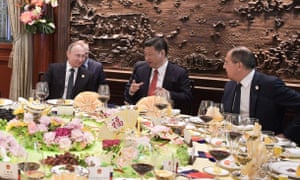 FacebookTwitterPinterest Russian president Vladimir Putin, China’s Xi Jinping and Russian foreign minister Sergei Lavrov enjoy a business breakfast at the summit on Sunday. Photograph: Alexei Nikolsky/TASS