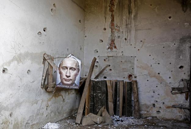 Ένα πορτρέτο του Βλαντιμίρ Πούτιν κρέμεται μέσα σε εγκαταλελειμμένο κτίριο στην Kravica της Βοσνίας και Ερζεγοβίνης, τον Ιούλιο του 2015. DADO RUVIC / REUTERS