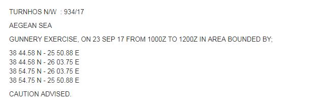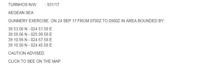 Μία από τις NAVTEX μάλιστα δεσμεύει περιοχή ανοιχτά της Μυκόνου.