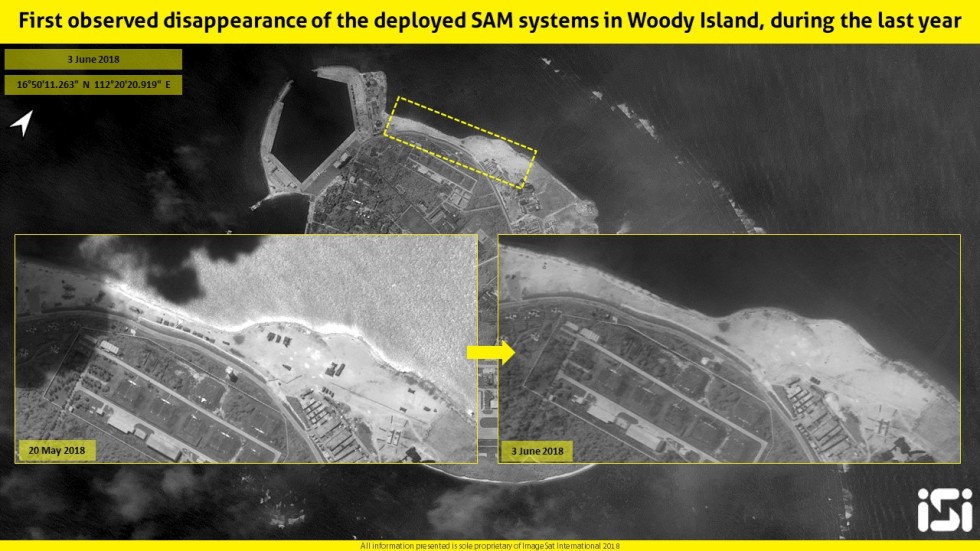 Satellite imagery and new analysis from Israeli intelligence firm ImageSat International (ISI), dated June 3, suggested the Chinese surface-to-air missile systems on Woody Island, in the Paracel Islands, may have been removed or relocated.