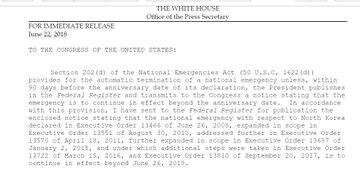 "...the national emergency with respect to North Korea... is to continue in effect beyond June 26, 2018."