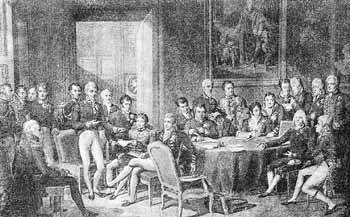 Το Συνέδριο της Βιέννης απ' όπου ξεκίνησε η Ιερά Συμμαχία. Γκραβούρα του Ζ. Γκοντφρουά |